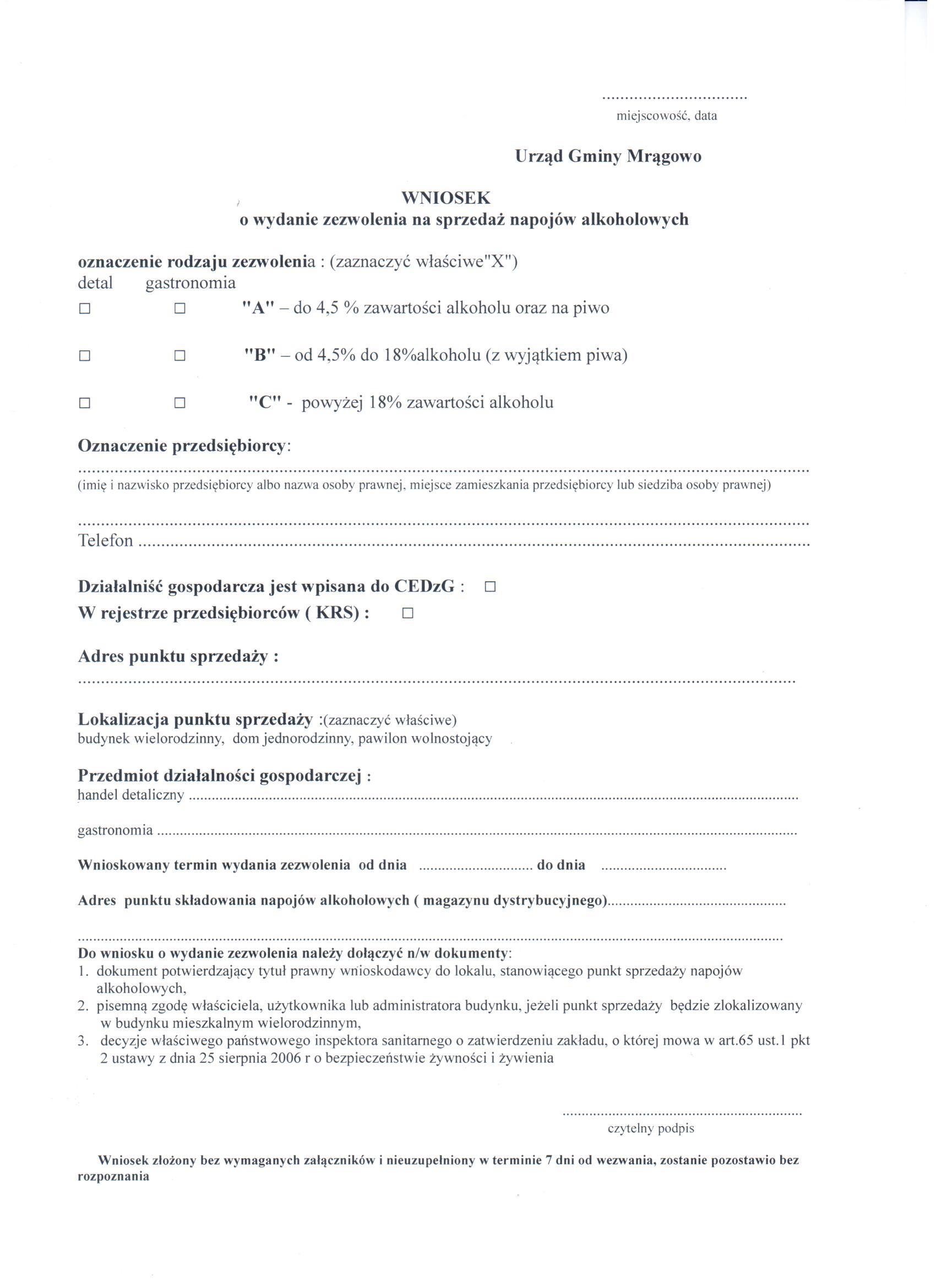 - oświadczenie o wartości sprzedaży napojów alkoholowych