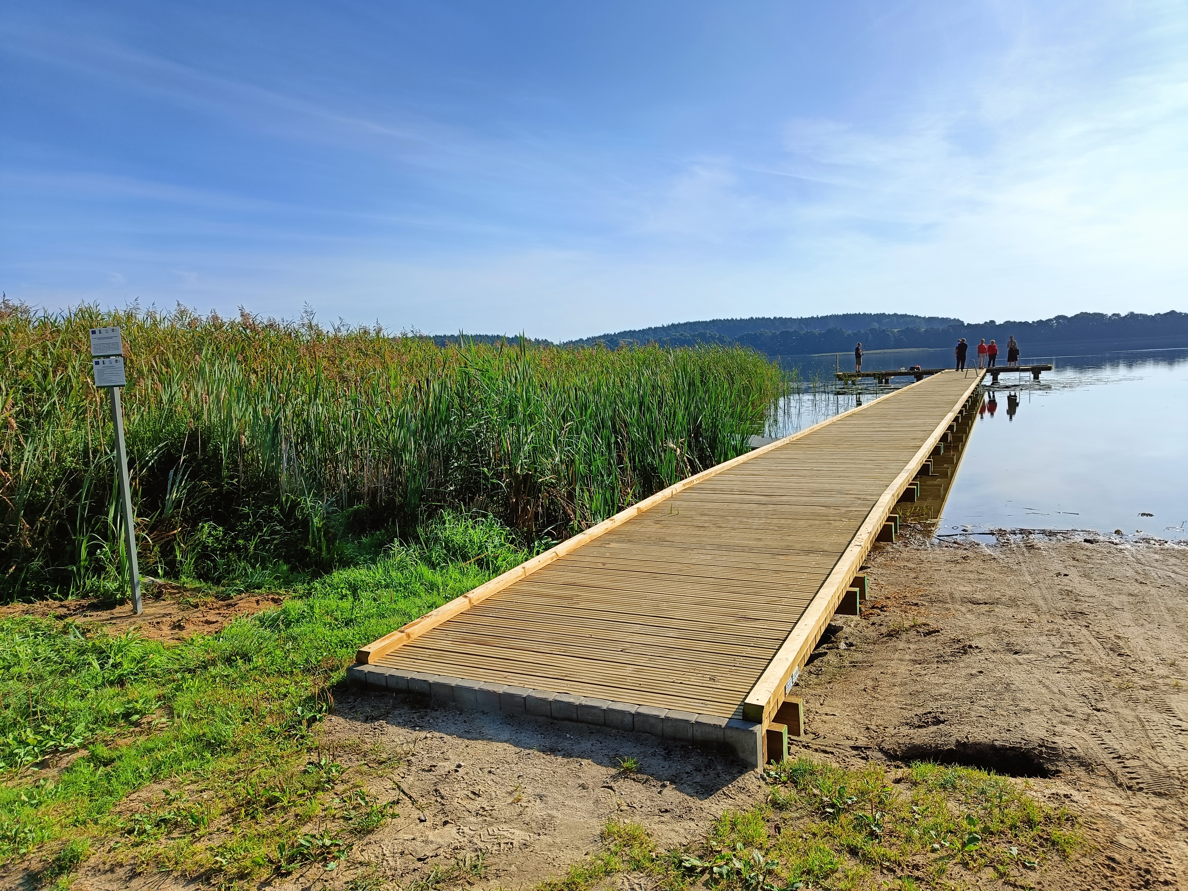 Z początkiem września zakończono realizację i dokonano odbioru technicznego inwestycji pod nazwą „Budowa ogólnodostępnego pomostu rekreacyjnego w miejscowości Mierzejewo, gmina Mrągowo”. Za realizację robót budowlanych odpowiedzialna była firma wyłoniona w drodze przetargu nieograniczonego tj. Akwedukt Inżynieria Wodna i Lądowa prowadzona przez pana Adriana Sadowskiego. Umowę na realizację zadania podpisano dnia 06.07.2023 r. W ramach inwestycji wybudowano w miejscowości Mierzejewo ogólnodostępny pomost rekreacyjny w kształcie litery „T” o wymiarach: