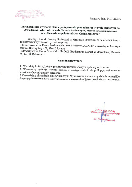 Wersja nieobowiązująca z dnia 14-11-2025 14:56:27 Drukuj Zawiadomienie o wyborze oferty Wersja nieobowiązująca Strona może zawierać nieaktualną treść i załączniki. Możesz pozostać na tej stronie lub przejść na wersję z obowiązującą zawartością. Nie pokazuj ponownie Pozostań Przejdź do wersji obowiązującej