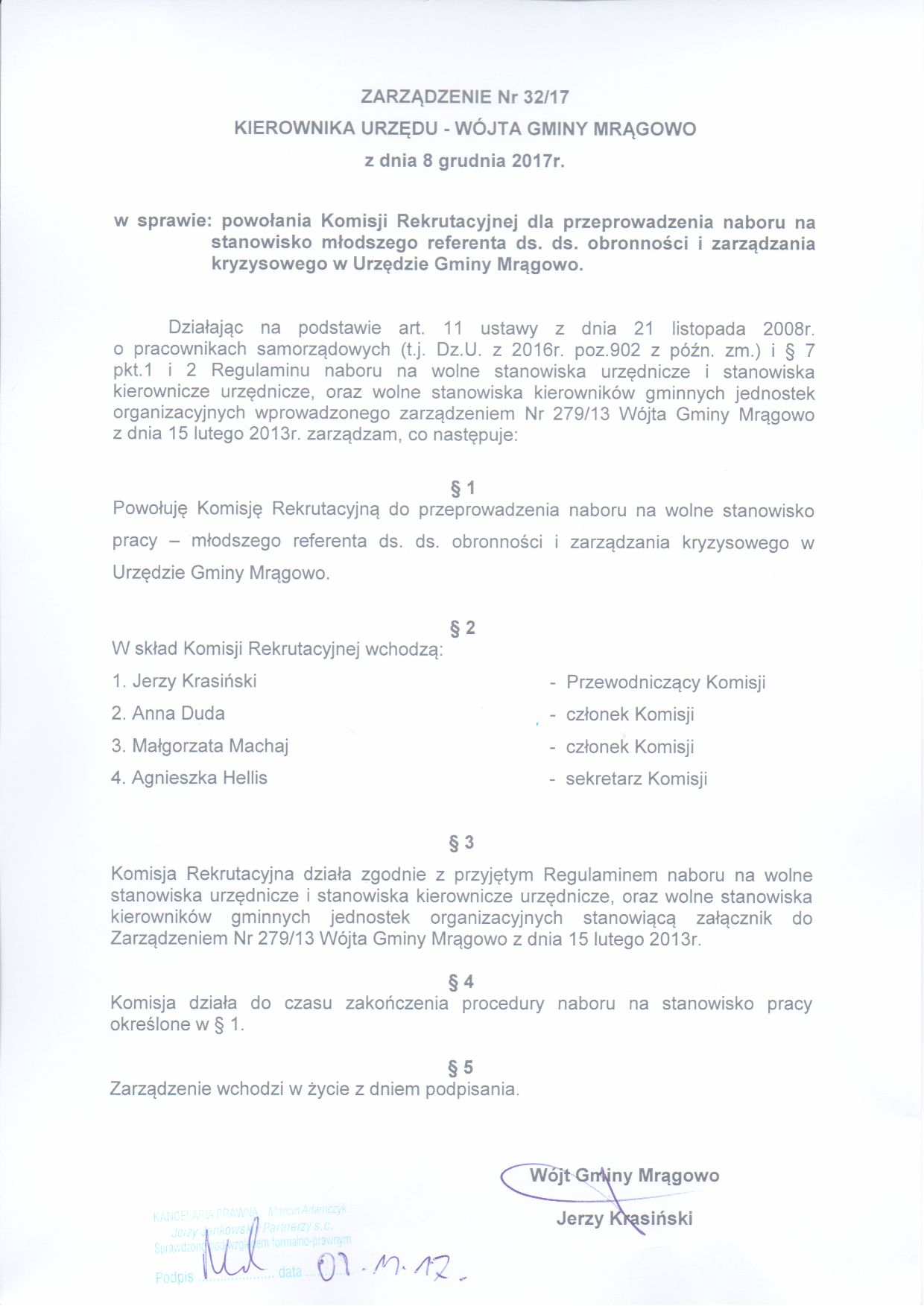 zarządzenie w sprawie powołania komisji rekrutacyjnej