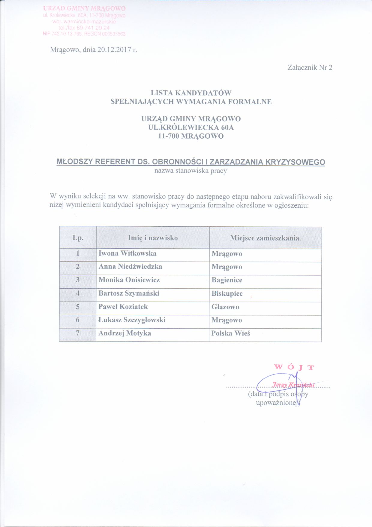Urząd Gminy Mrągowo ul. Królewiecka 60A, 11-700 Mrągowo
